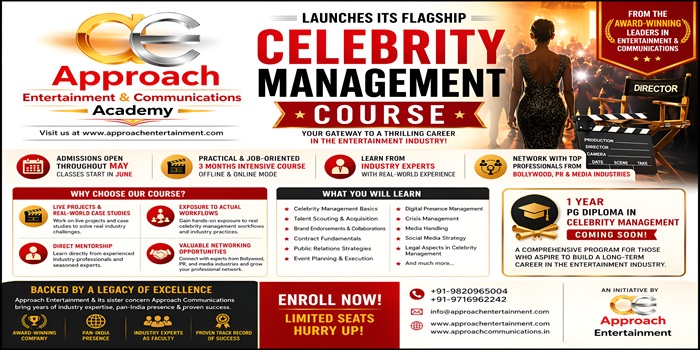 Mumbai: Approach Entertainment & Communications Academy has announced the launch of its flagship Celebrity Management Course, a specially designed program aimed at preparing aspiring talent for one of the most dynamic and fast-growing career paths in the entertainment & media industry.