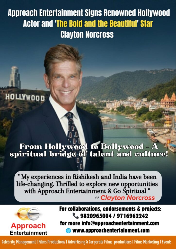 Mumbai – India’s leading award-winning Celebrity Management, Films Productions, and Entertainment Marketing company, Approach Entertainment, is thrilled to announce the exclusive signing of renowned Hollywood actor Clayton Norcross for representation in India. Best known for his groundbreaking role as the original Thorne Forrester in the global hit soap opera “The Bold and the Beautiful,” Norcross brings decades of international stardom and versatility to the company’s prestigious roster.